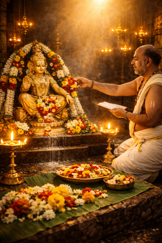 Ashtotharam Ashtotharam వివరణ:స్వామివారి 108 నామాలతో చేసే అర్చన.భక్తుని కోరికలు నెరవేరడానికి, శాంతి కోసం ఈ సేవ చేయబడుతుంది. Book Pooja - Click Here - 1 Time Book Pooja - Click Here - 1 Month Book Pooja - Click Here - 6 Months Book Pooja - Click Here - Per Year