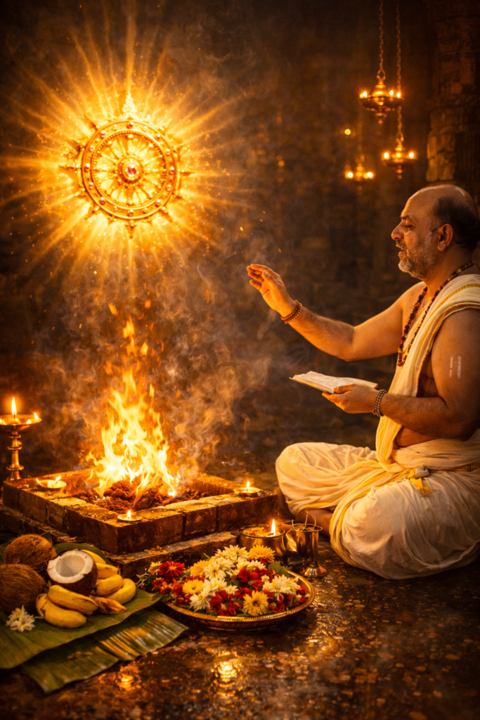 Sudarshana Homam Sudarshana Homam వివరణ:దుష్టశక్తుల నివారణ, శత్రు దోషాలు తొలగించడానికి ఈ హోమం చేస్తారు. Book Pooja - Click Here