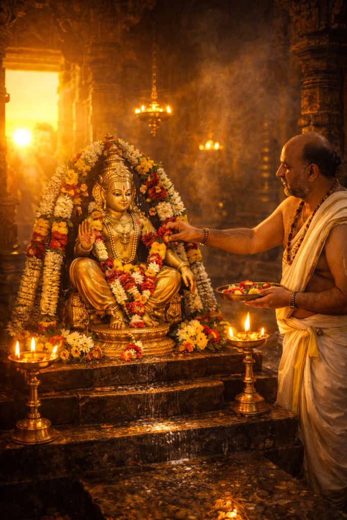 Usha Pooja Usha Pooja వివరణ: ప్రభాతకాలంలో స్వామివారికి జరిగే పూజ. ఈ పూజ ద్వారా దినం అంతా శుభం, శాంతి, ఐశ్వర్యం కలుగుతాయని విశ్వాసం. Book Pooja - Click Here